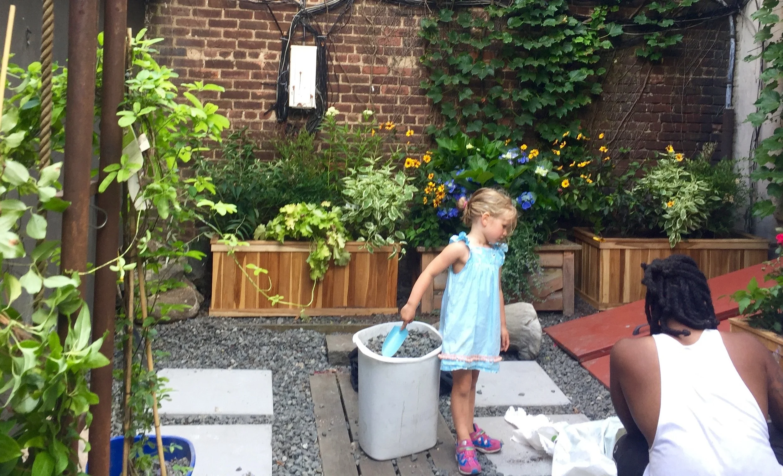 And of course our tiniest and mightiest installation consultant rolled up her sleeves and grabbed a shovel, helping us take the garden to the finish line!